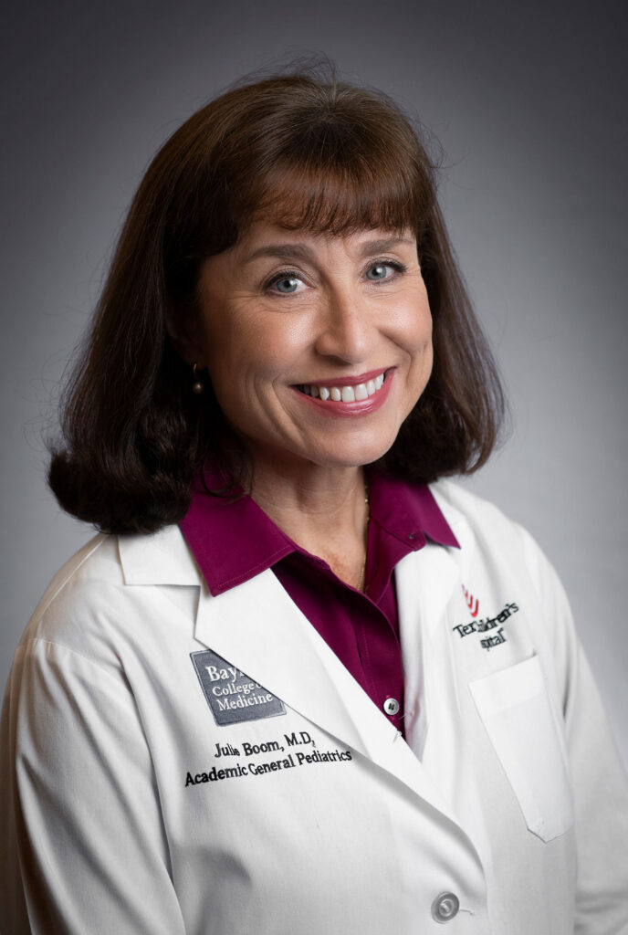 Dr. Julie Boom graduated with highest honors with a B.S. in Biology/Biological Studies from the University of Texas at Austin and completed her medical education at Baylor College of Medicine. Julie completed her internship and residency in pediatrics at Boston Children’s Hospital. Dr. Boom is a Professor of Pediatrics at Baylor College of Medicine and the Director of the Immunization Project at Texas Children’s Hospital. From 2002-2005, Dr. Boom served as the principal investigator for the Centers for Disease Control and Prevention’s grant “Raising Immunizations Thru Education” (RITE), which analyzed the impact of an in-office, peer-based education program to improve immunization behaviors and immunization coverage levels. Dr. Boom led the development, implementation and expansion of the Houston-Harris County Immunization Registry from 2001-2008. In addition, she has led projects examining the time costs associated with obtaining immunization registry consent and the financial effects of an immunization reminder/recall initiative on the general pediatric practice. For the past 15 years, Dr. Boom has served as the Houston site principal investigator for the Centers for Disease Control and Prevention’s New Vaccine Surveillance Network which conducts surveillance for pediatric acute gastrointestinal infection and acute respiratory illness. Additionally, CDC has supported Dr. Boom and her team at Texas Children’s Hospital to conduct surveillance for emerging diseases and pathogens such as acute flaccid myelitis, EV-D68, arboviruses, and SARS-CoV-2. Additionally, Dr Boom has investigated vaccine hesitancy among pregnant women and parents of infants. Dr. Boom is one of the primary authors of the booklet, “Vaccine Preventable Disease: The Forgotten Story”; to date, over 200,000 copies have been distributed. Julie is the mother of three children, ages 20, 26 and 30 years.